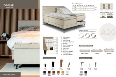 THE ADJUSTABLE A20 bed is made for personalization. Designed for ultimate customization, both sides of this bed adjust independently, allowing you and your partner to find your perfect sleeping positions. Its turnable mattress offers different firmness levels, ensuring the perfect sleep experience. Enjoy superior comfort and sleek design with the ADJUSTABLE A20